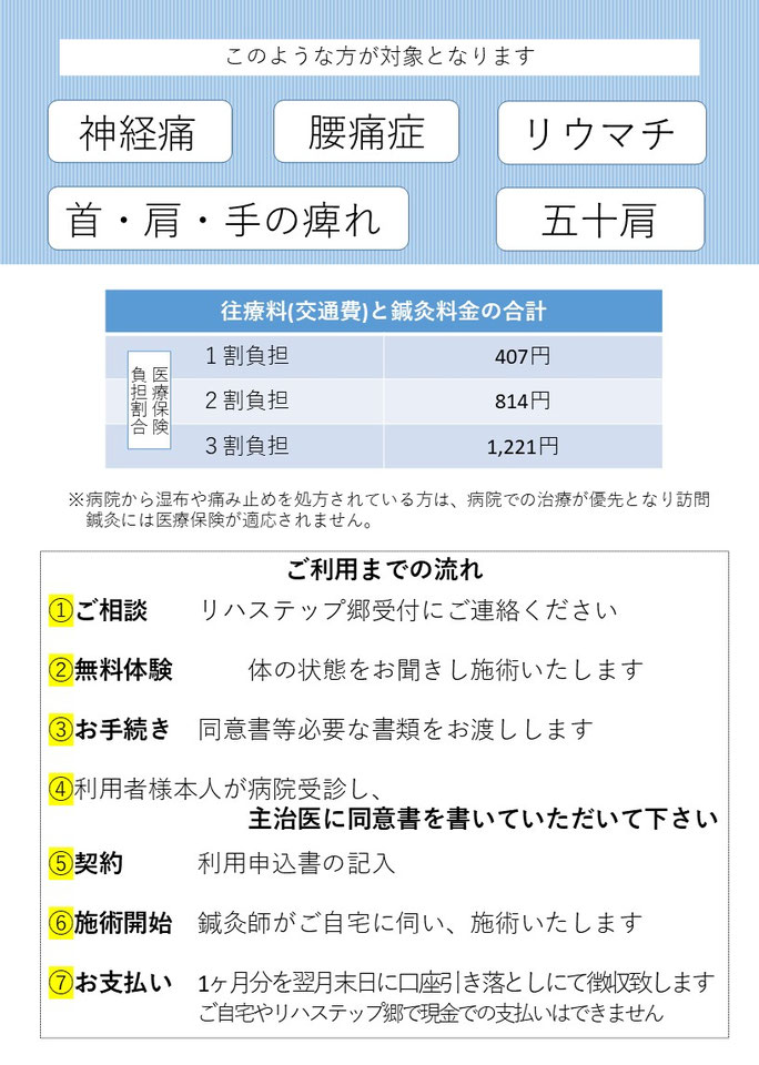 訪問鍼灸はリハステップ郷利用者様にのみ提供しております